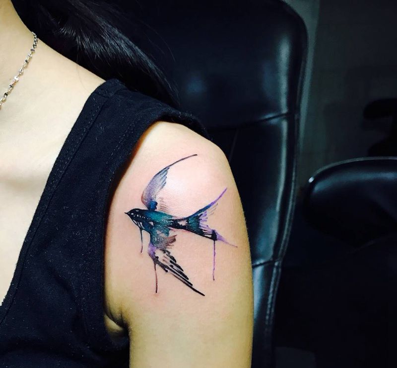 水墨燕纹身图片_成品肩部欧美清新动物纹身图案