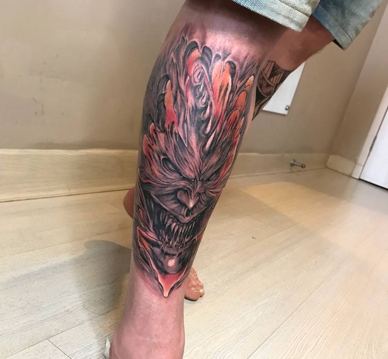 当前位置: 首页 >广东省珠海市纹身店-九纹龙纹身图案>恶魔纹身图片_成品腿部欧美人物鬼神纹身图案