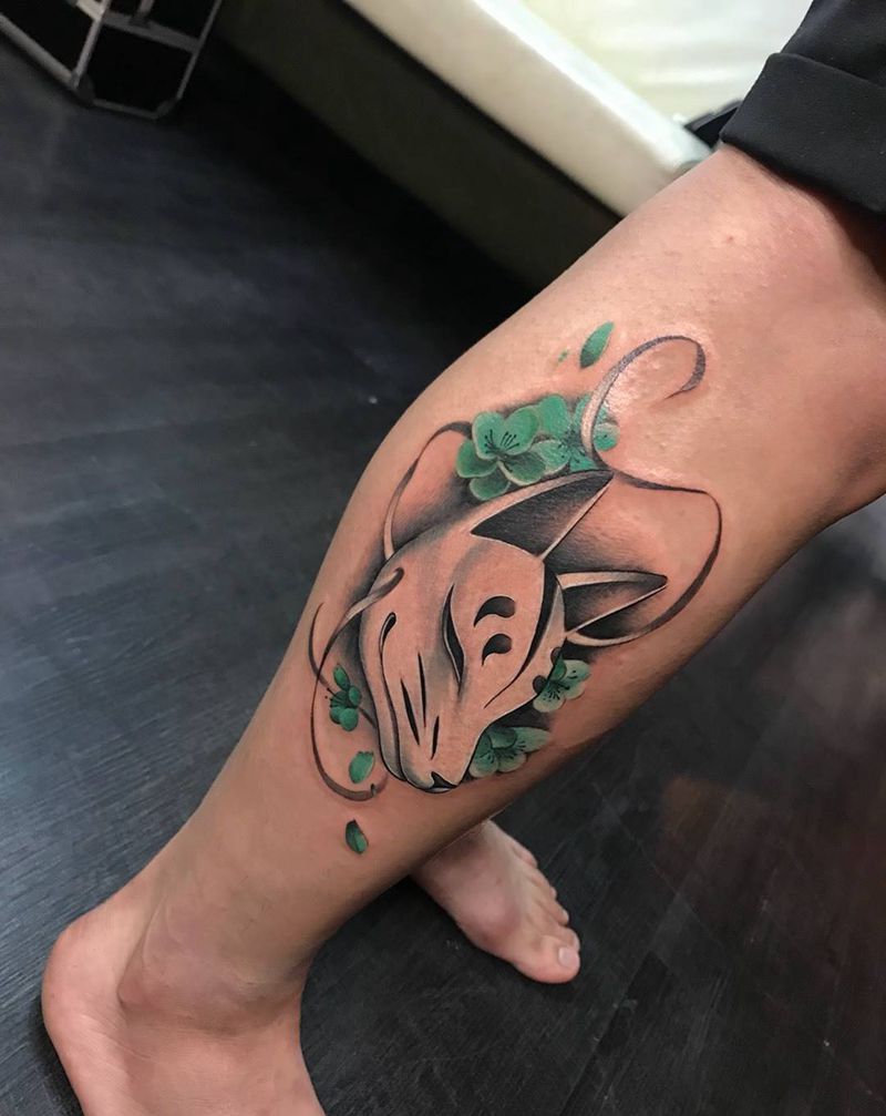 狐纹身图片_成品腿部鬼神动物清新纹身图案