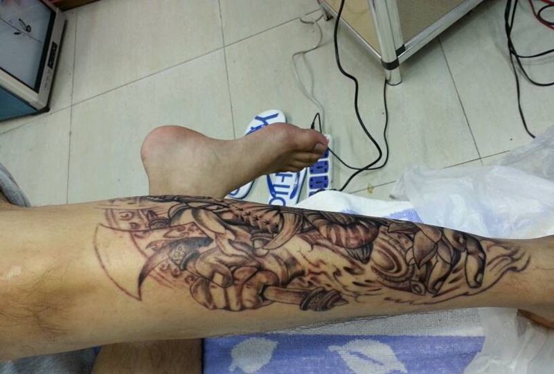 • T网红王老大花腿龙纹身图片_腿部新传统纹身图案