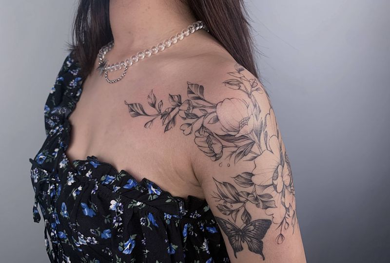 • 女性大花胸纹身_43张霸气漂亮的女性大花胸纹身图案作品