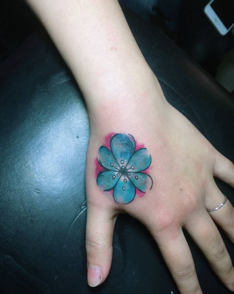 • 手背潮流时尚的玫瑰花眼睛纹身图案
