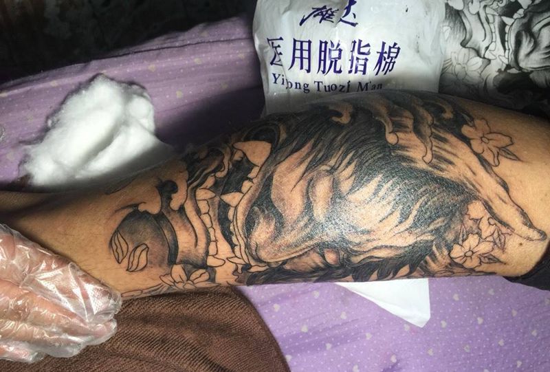 • T网红王老大花腿龙纹身图片_腿部新传统纹身图案