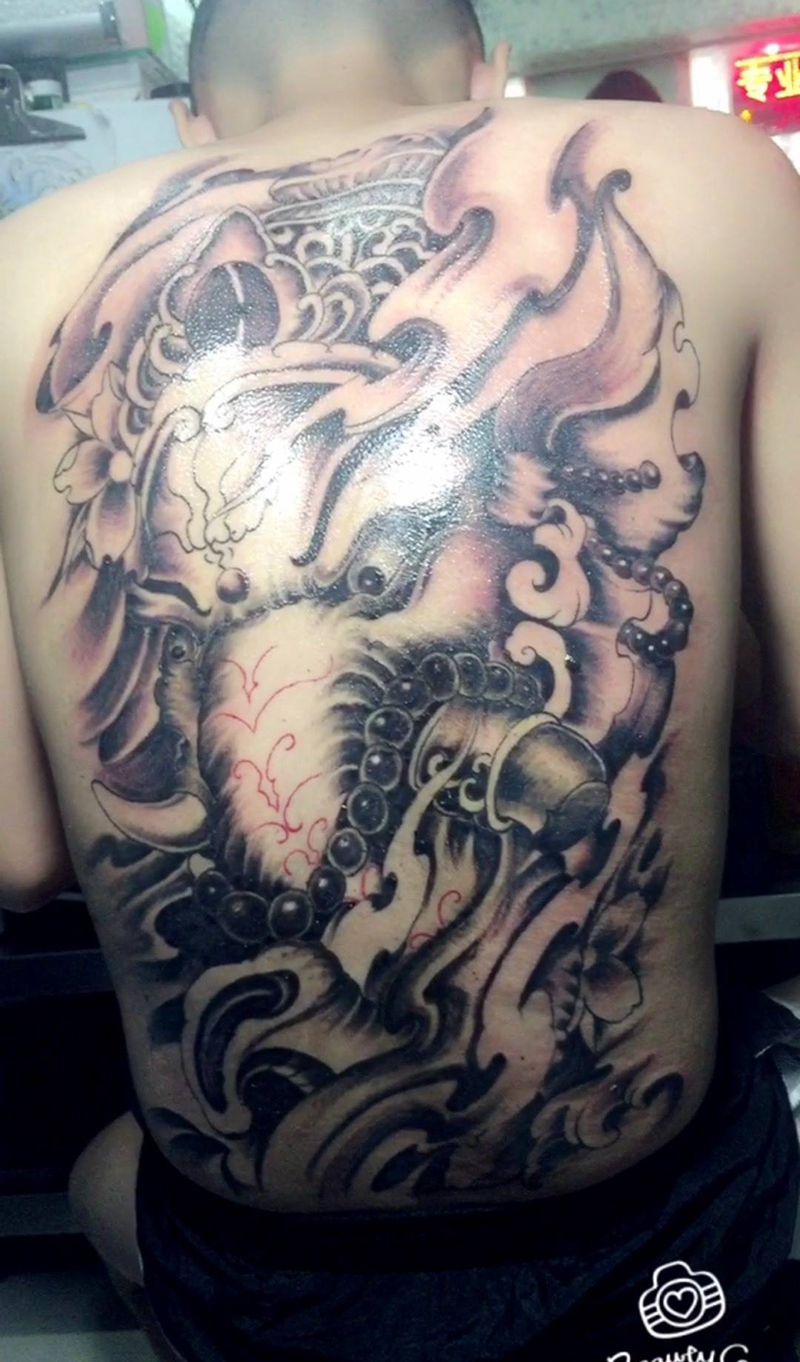 满背象神纹身图片