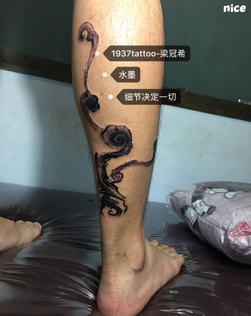 • T网红王老大花腿龙纹身图片_腿部新传统纹身图案