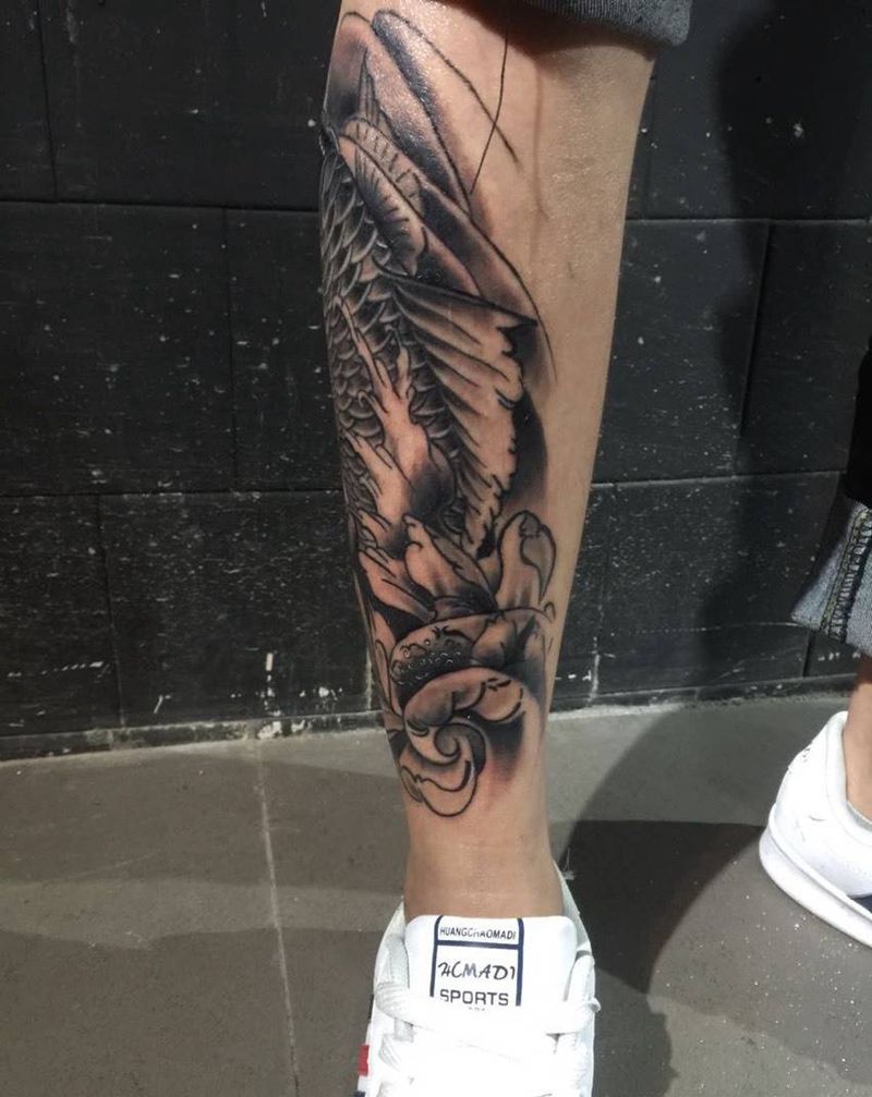 • T网红王老大花腿龙纹身图片_腿部新传统纹身图案