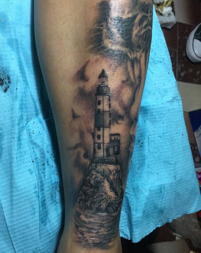 《灯塔》花腿拼接纹身图片