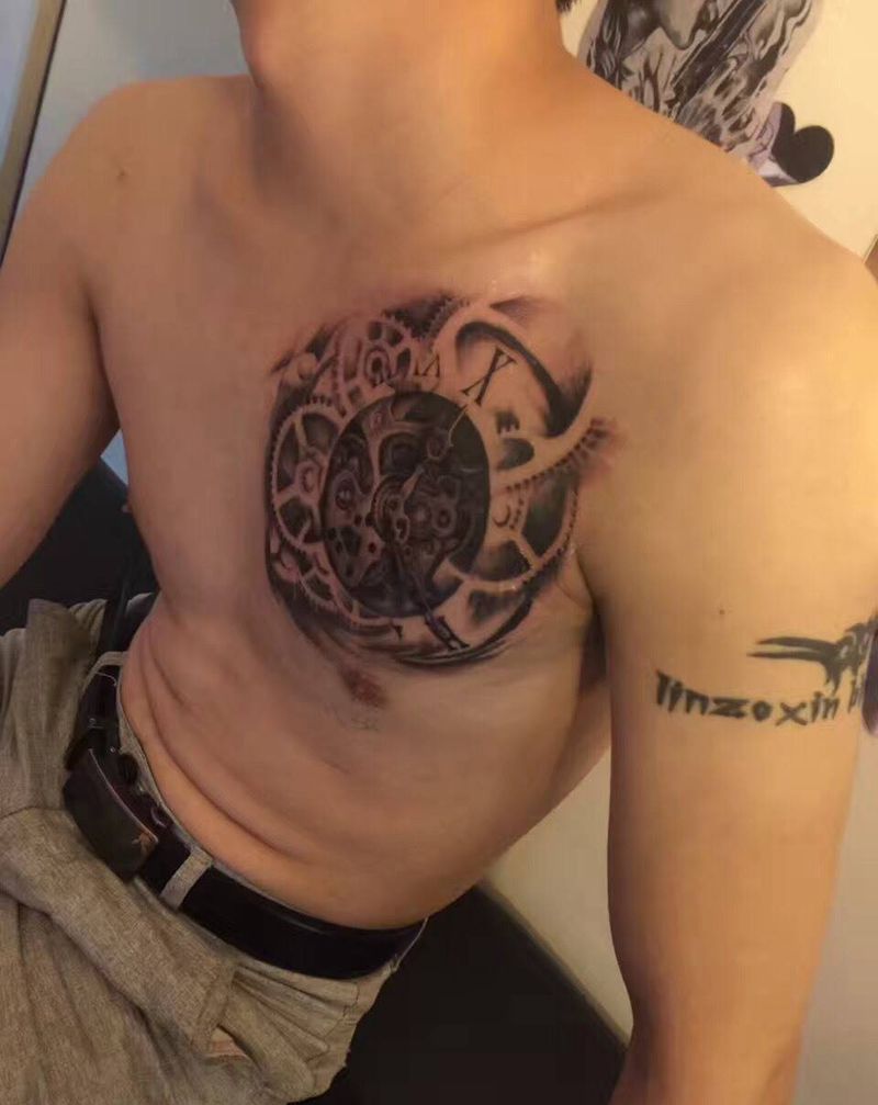当前位置: 首页 >广东省汕头市纹身店-鬼手纹身纹身图案>胸口钟表纹身图片