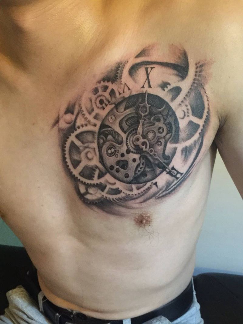 当前位置: 首页 >广东省汕头市纹身店-鬼手纹身纹身图案>胸口钟表纹身图片