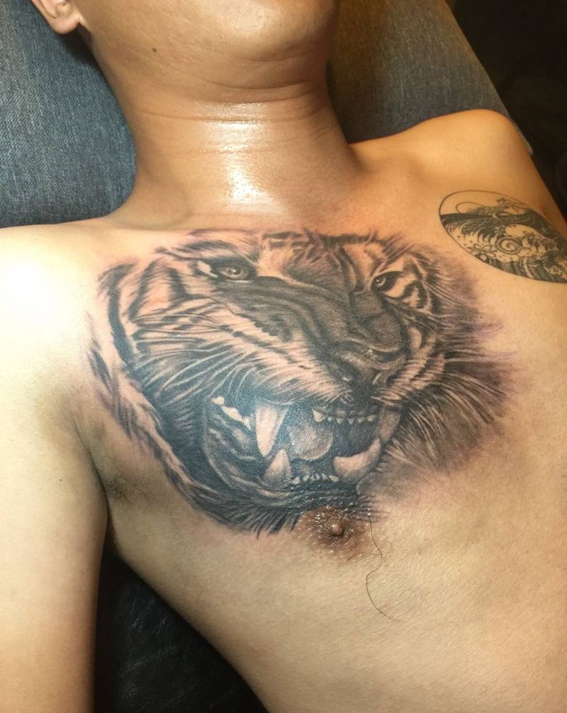 大猫纹身图片_胸部欧美写实动物老虎纹身图案