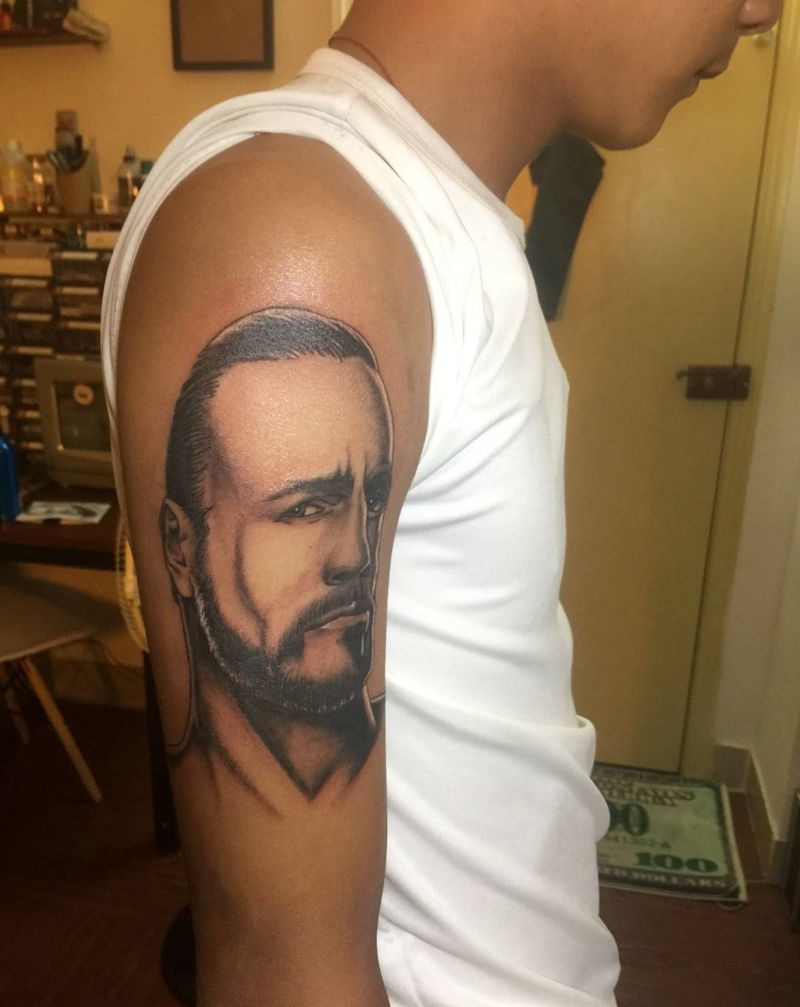 当前位置: 首页 >广东省汕头市纹身店-鬼手纹身纹身图案>黑灰肖像纹身图片