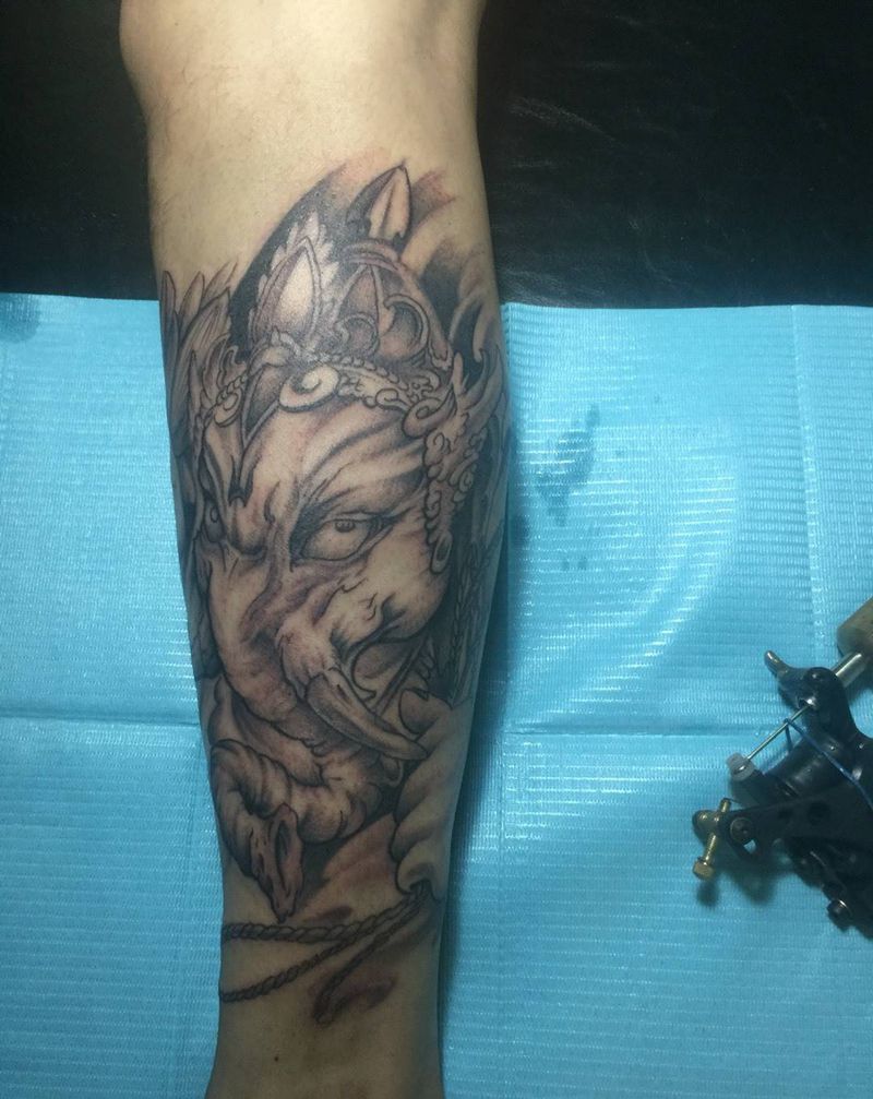 当前位置: 首页 >广东省汕头市纹身店-鬼手纹身纹身图案>《象神》纹身图片