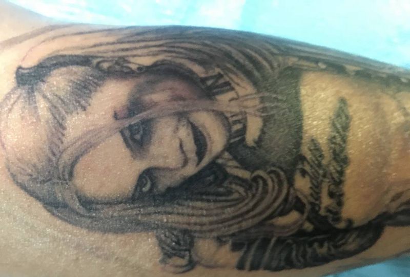 当前位置: 首页 >广东省汕头市纹身店-鬼手纹身纹身图案>《哈莉奎茵》纹身图片_哈莉奎茵小丑女欧美写实肖像腿部脚部黑灰纹身图案