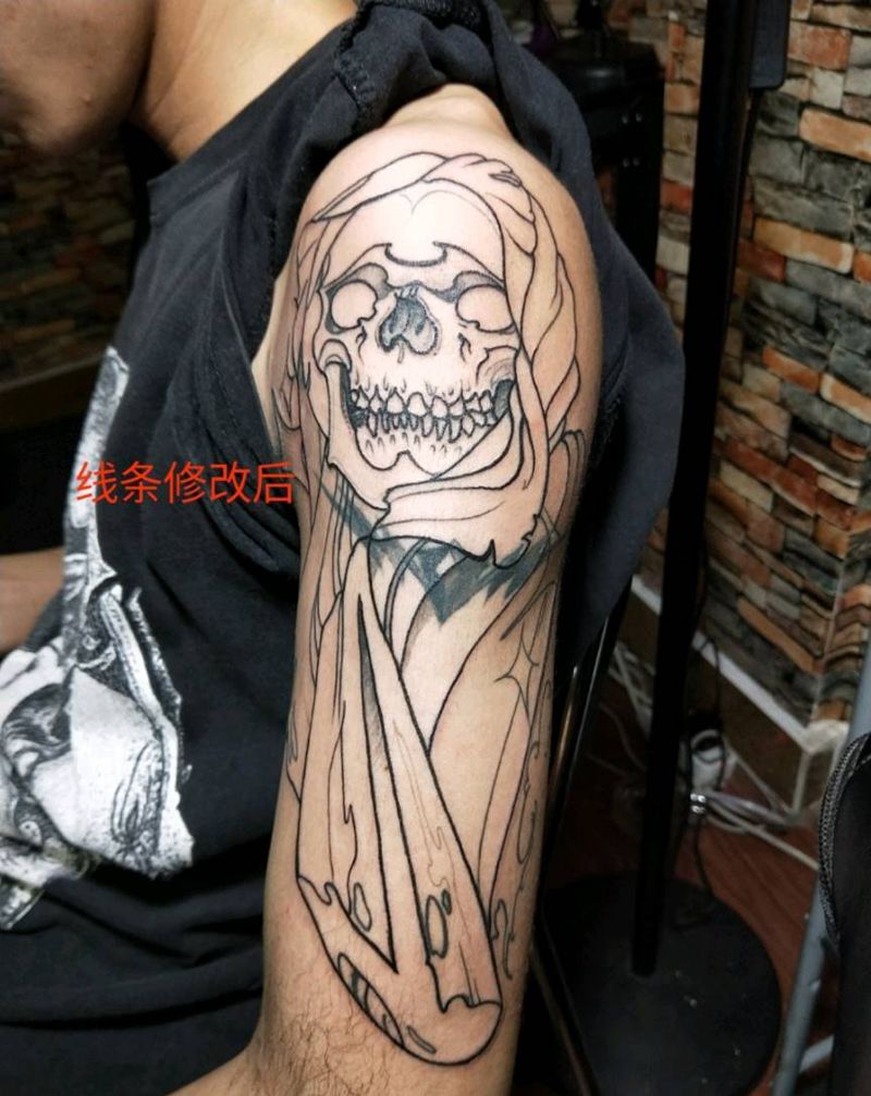 当前位置: 首页 >广东省汕头市纹身店-汕头羽刺青纹身图案>修改/遮盖骷/髅头作品纹身图片_点刺纹身图案