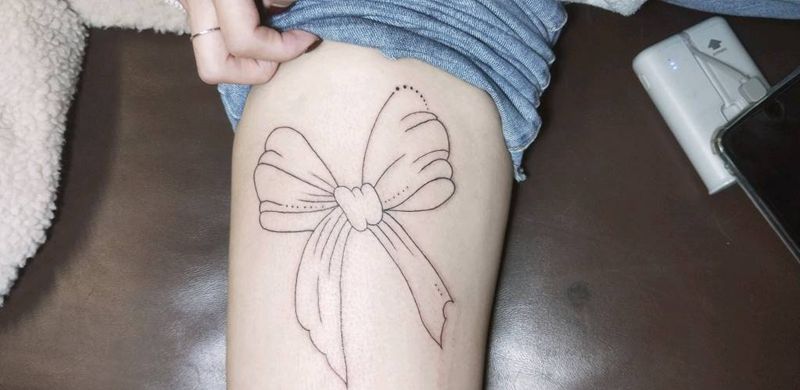 蝴蝶结纹身图片_腿部纹身图案