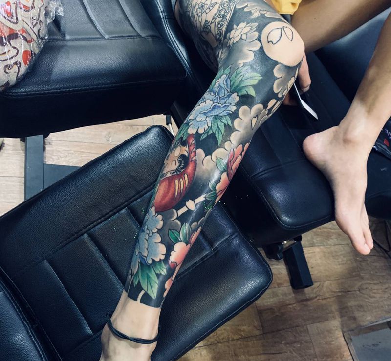 当前位置: 首页 >广东省珠海市纹身店-纹身(刺青先生)工作室纹身图案>传统花腿纹身图片_腿部脚部老传统新传统纹身图案