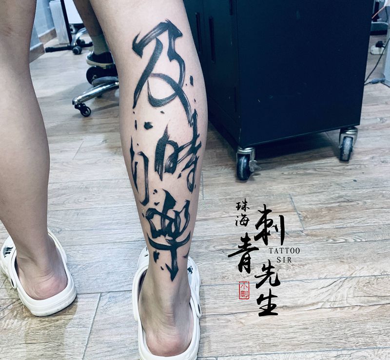 当前位置: 首页 >广东省珠海市纹身店-纹身(刺青先生)工作室纹身图案>水墨字纹身图片_腿部脚部水墨纹身图案
