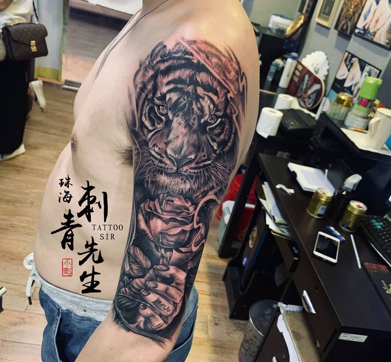 当前位置: 首页 >广东省珠海市纹身店-纹身(刺青先生)工作室纹身图案>老虎玫瑰纹身图片_手部手臂欧美写实纹身图案