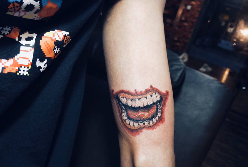 当前位置: 首页 >广东省汕头市纹身店-汕头羽刺青纹身图案>小丑嘴巴纹身图片_手臂Old School纹身图案