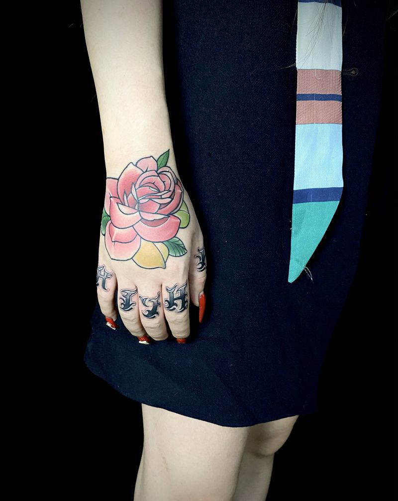 • 手背潮流时尚的玫瑰花眼睛纹身图案