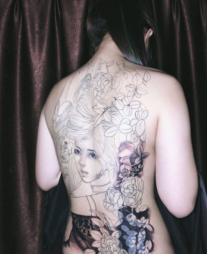 艺妓 遮盖纹身图片_背部纹身图案
