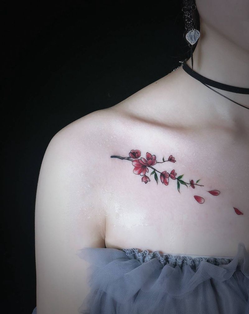 当前位置: 首页 >广东省汕头市纹身店-御刺堂纹身图案>锁骨彩色花纹身图片