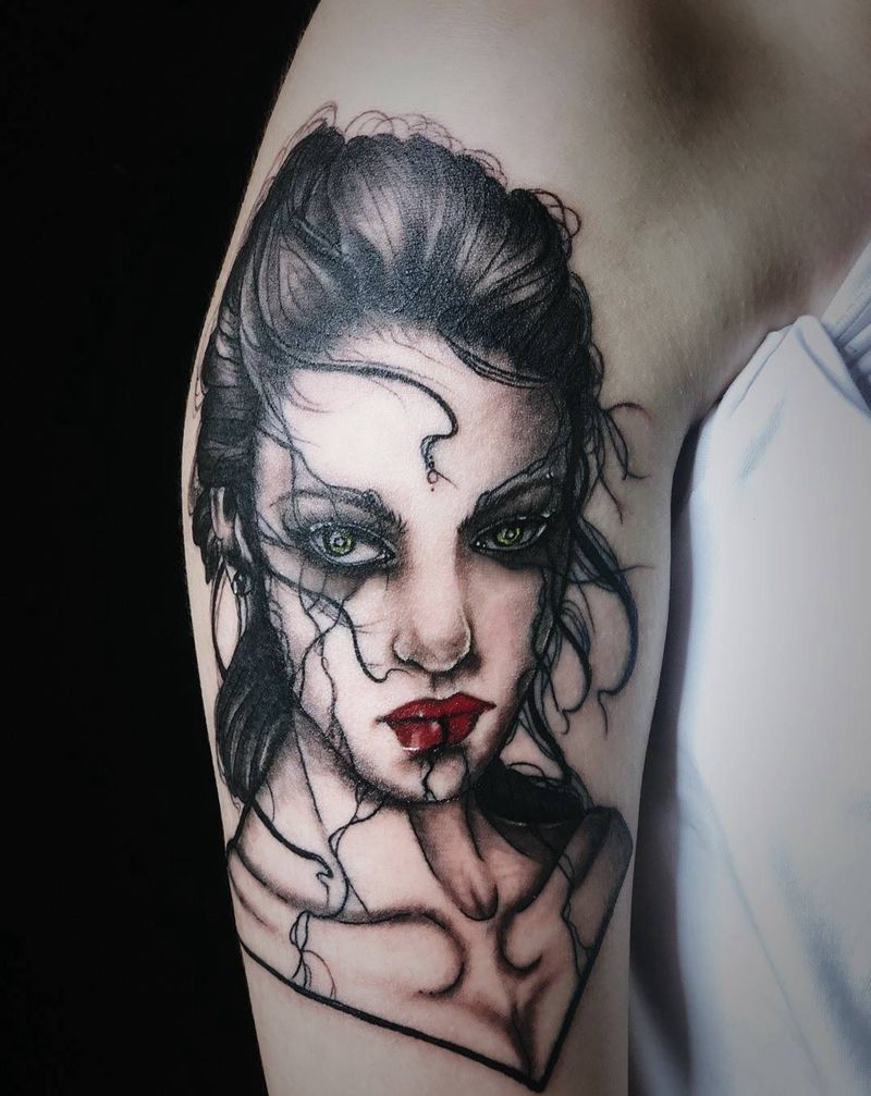 • 纹身吧推荐的披肩图腾半胛纹身图案作品展示