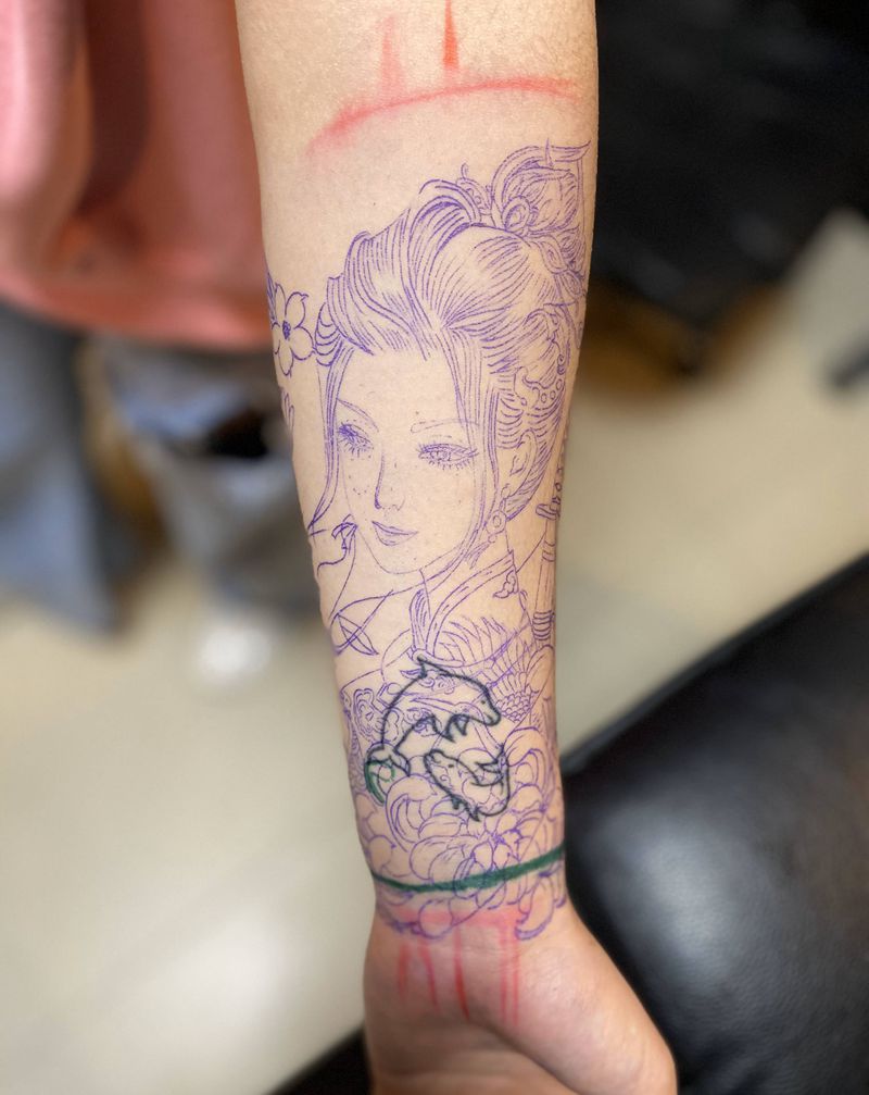艺妓遮盖纹身图片_手臂艺妓 美女纹身图案