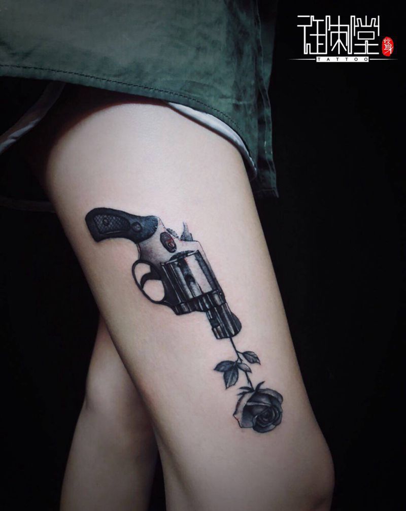 当前位置: 首页 >广东省汕头市纹身店-御刺堂纹身图案>枪纹身图片_腿部欧美写实纹身图案
