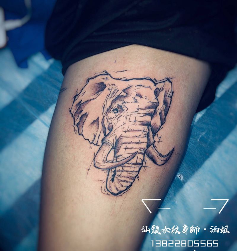 当前位置: 首页 >广东省汕头市纹身店-飒纹身图案>综合包大腿纹身图片_腿部点刺水墨鹤水母象纹身图案
