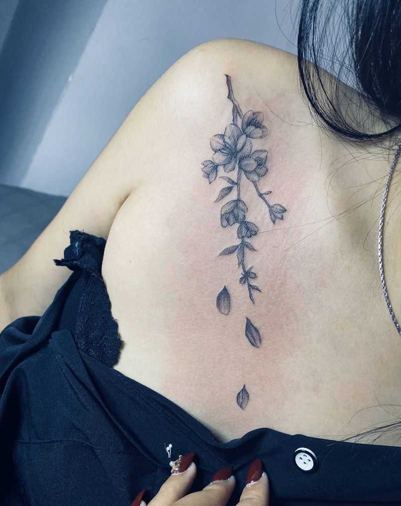 当前位置: 首页 >广东省汕头市纹身店-飒纹身图案>素花纹身图片_肩部手部点刺New School锁骨素花小清新纹身图案