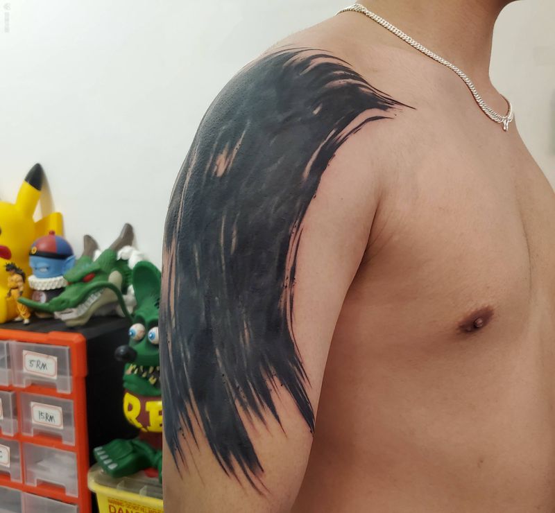 泼墨笔触遮盖纹身图片_手臂笔触泼墨纹身图案