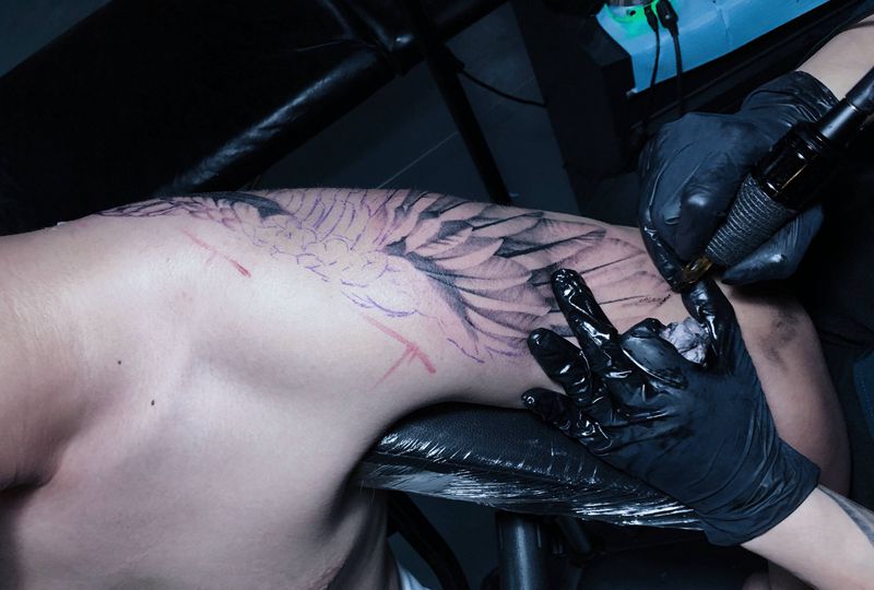 • 纹身吧推荐的披肩图腾半胛纹身图案作品展示
