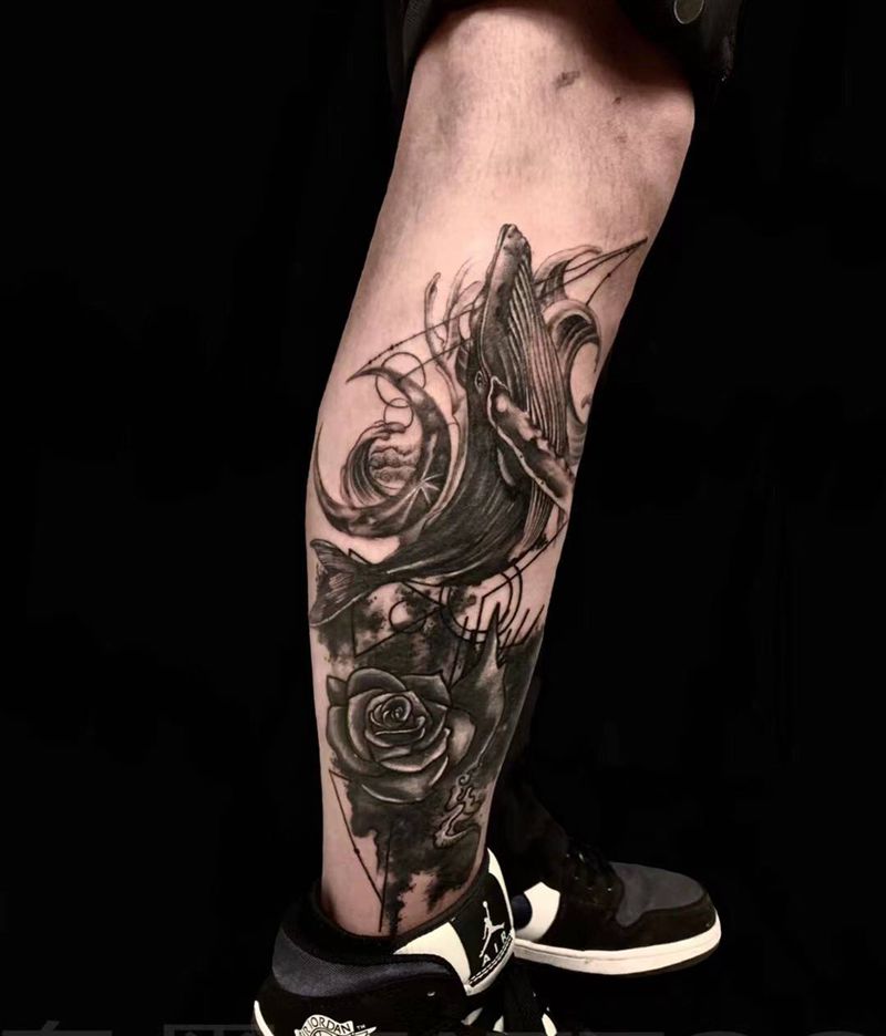 修改旧纹身 玫瑰 鲸鱼纹身图片_腿部纹身图案