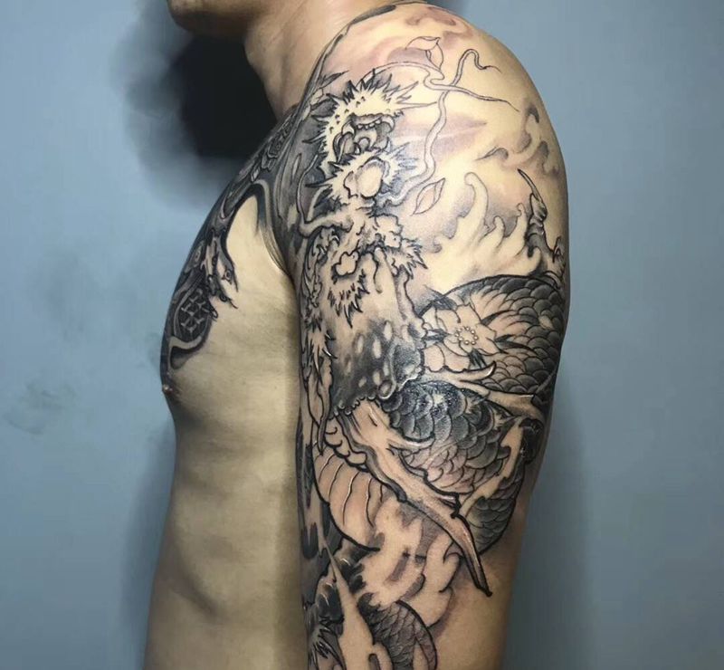 • T云龙九郎纹身图片_背部老传统云龙九郎纹身图案