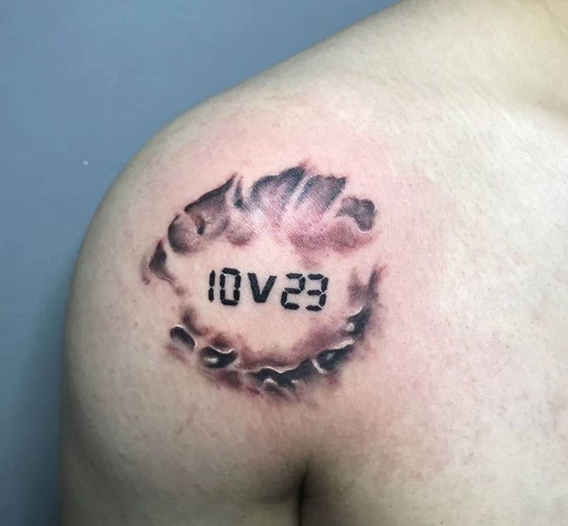 有故事的咬痕纹身图片_肩部纹身图案