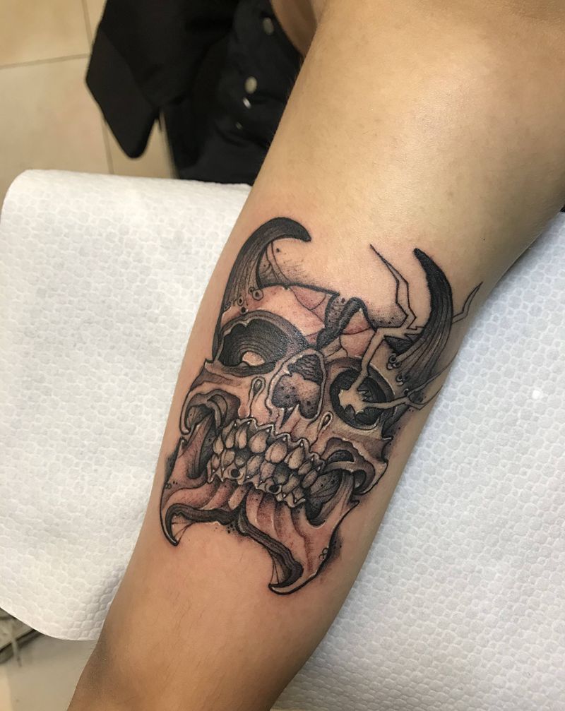 当前位置: 首页 >广东省汕头市纹身店-墨堂刺青纹身图案>骷髅纹身图片_手臂纹身图案