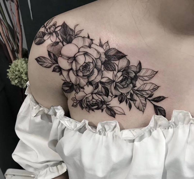 素花纹身图片_肩部胸部纹身图案