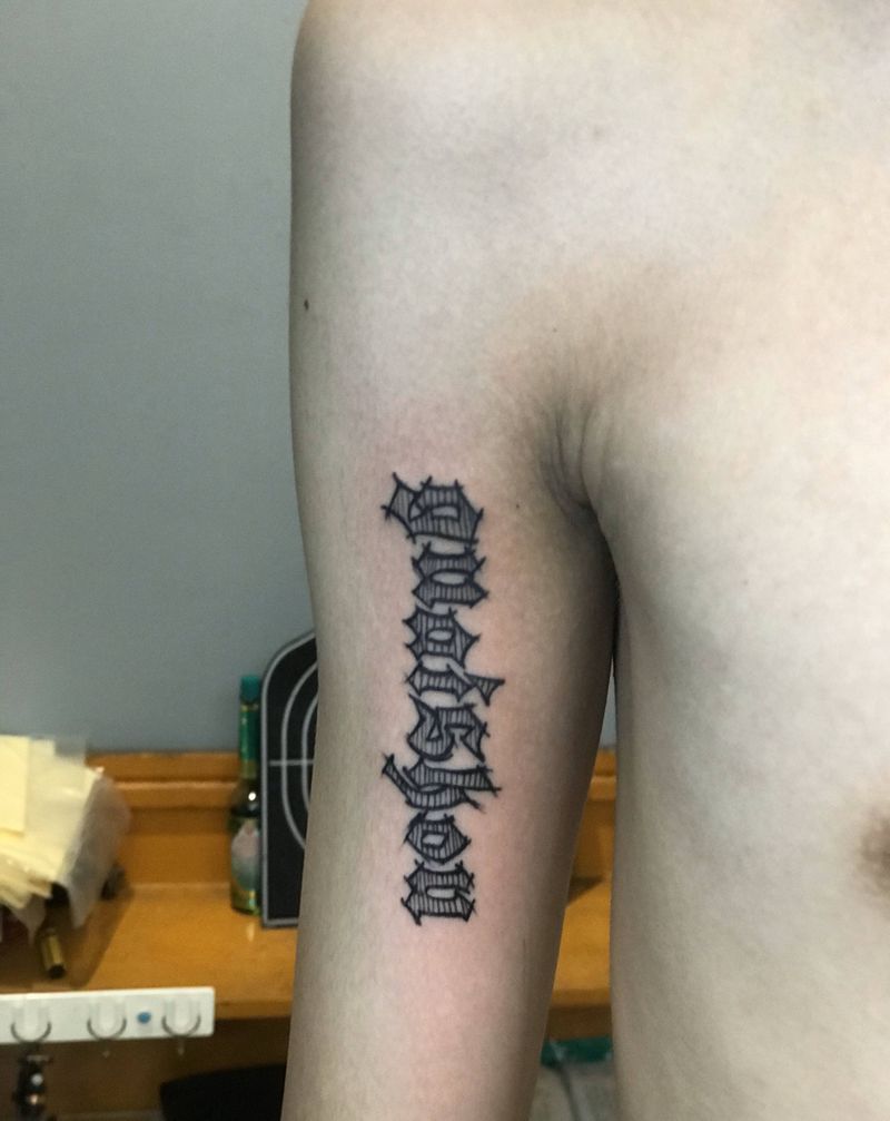 当前位置: 首页 >广东省汕头市纹身店-墨堂刺青纹身图案>字体纹身图片_手臂手部纹身图案