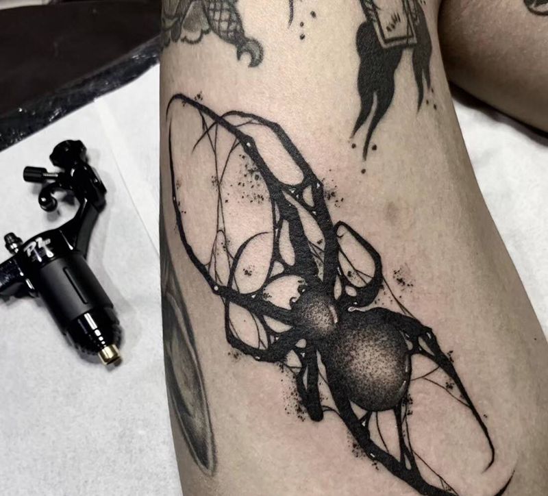 暗黑系 蜘蛛纹身图片_腿部纹身图案