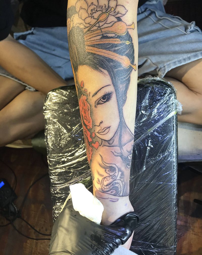 当前位置: 首页 >广东省汕头市纹身店-领绣纹身机构纹身图案>小臂艺妓纹身图片_手臂纹身图案