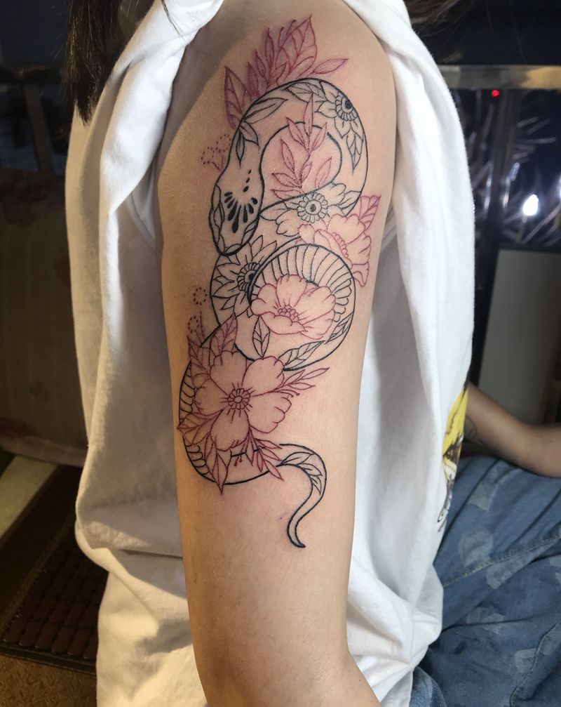 • 女性大花胸纹身_43张霸气漂亮的女性大花胸纹身图案作品
