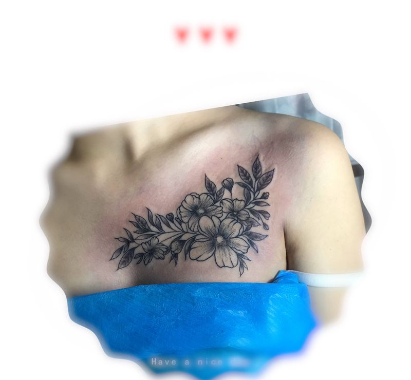 • 女性大花胸纹身_43张霸气漂亮的女性大花胸纹身图案作品