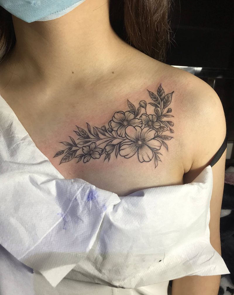 • 女性大花胸纹身_43张霸气漂亮的女性大花胸纹身图案作品