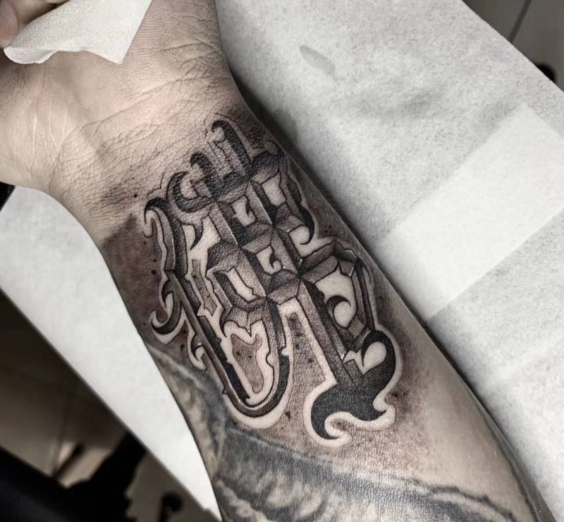 当前位置: 首页 >广东省汕头市纹身店-墨堂刺青纹身图案>花体纹身图片_手臂花体字纹身图案