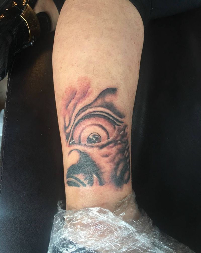 • T包小腿吹火男+阿多福纹身图片_腿部老传统新传统吹火男阿