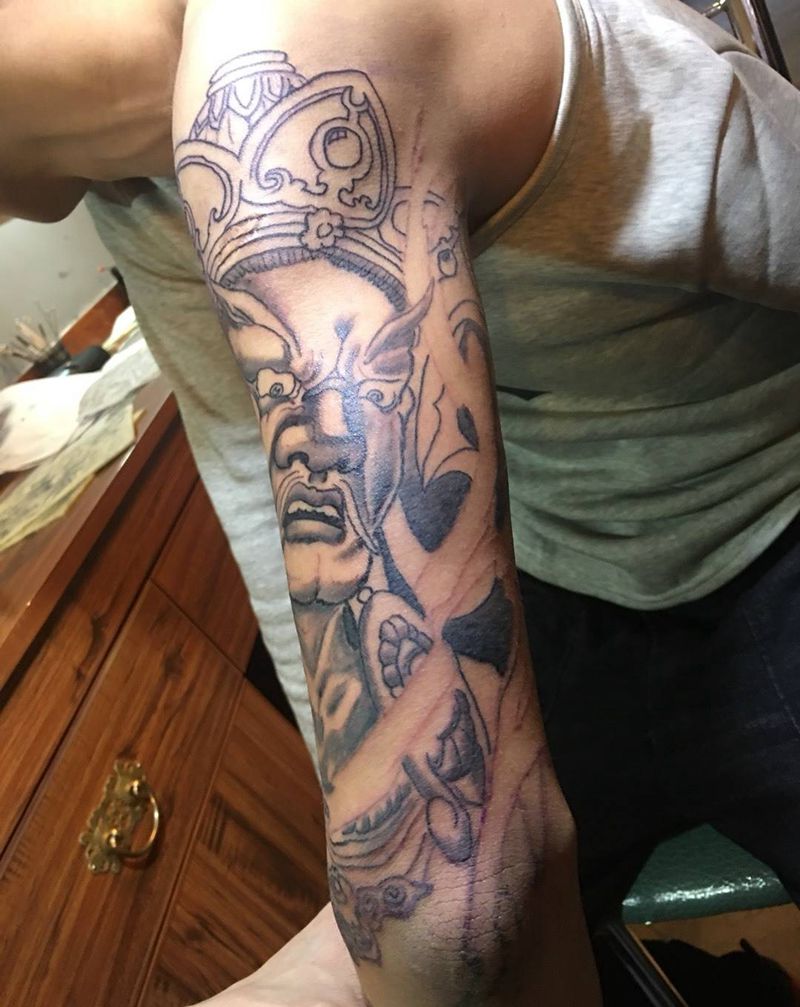 当前位置: 首页 >广东省汕头市纹身店-领绣纹身机构纹身图案>黄财神纹身图片_手臂传统鬼神纹身图案