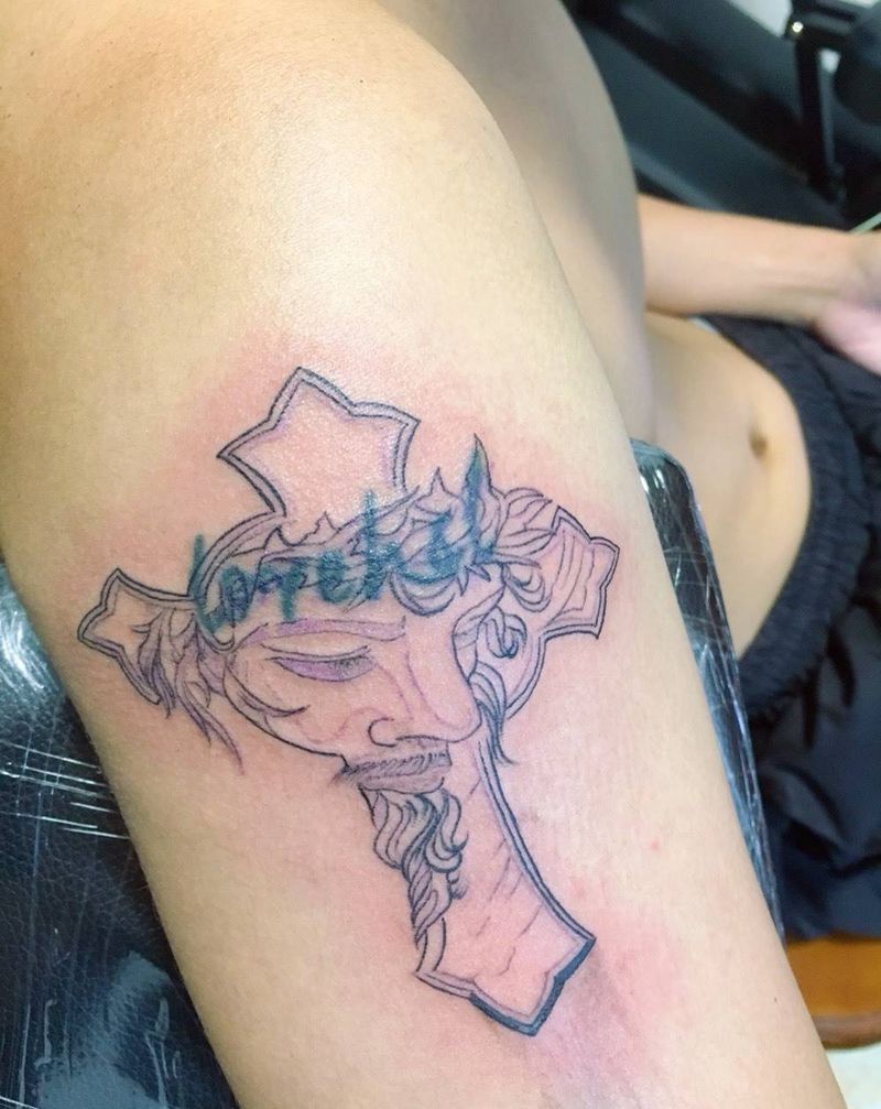 当前位置: 首页 >广东省汕头市纹身店-权能刺青纹身图案>耶稣遮盖纹身图片_手臂纹身图案