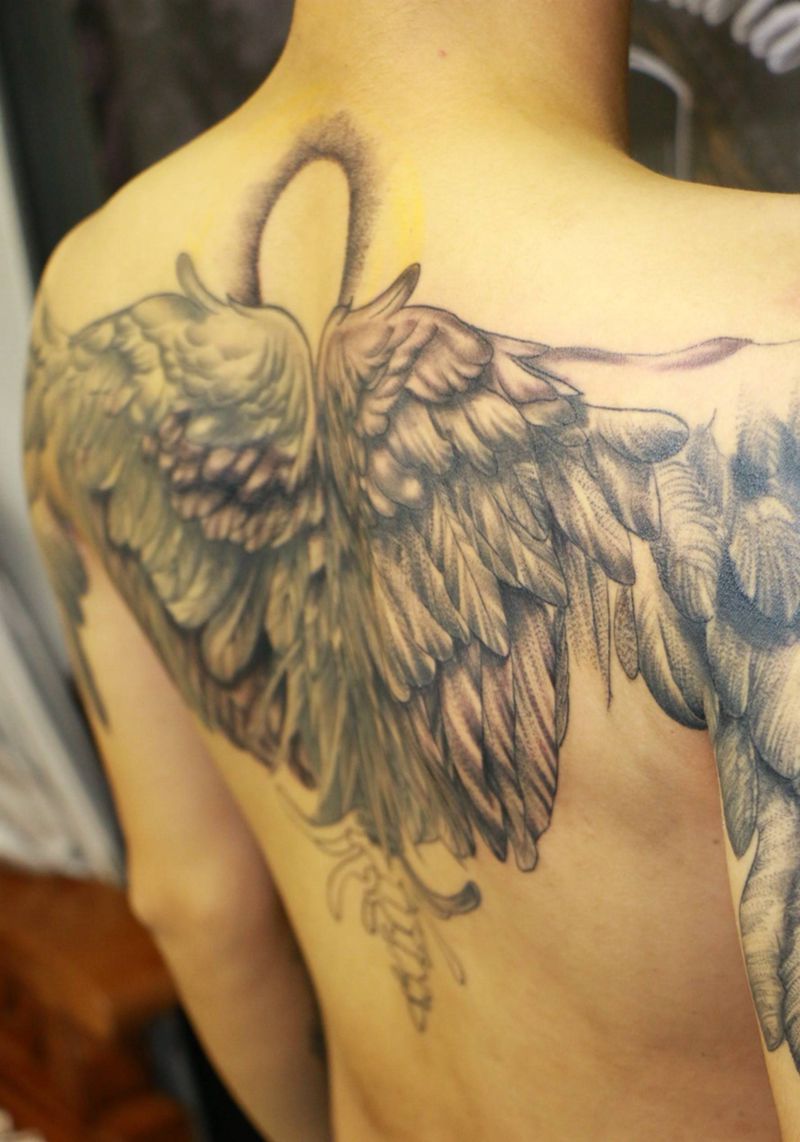 更新翅膀的进度纹身图片_背部手臂纹身图案