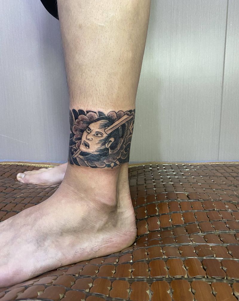 脚环未完成纹身图片_腿部老传统纹身图案